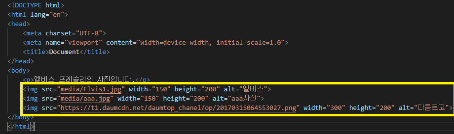 <img src="이미지 파일의 URL" alt="문자열" width="이미지 폭" height="이미지 높이">