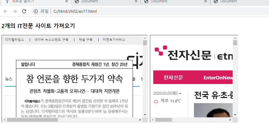 <h3>2개의 IT전문 사이트 가져오기</h3>