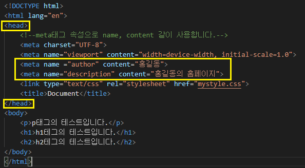 메타 데이터 : 웹 페이지의 저작자, 내용설명, 문자 인코딩 방식 등