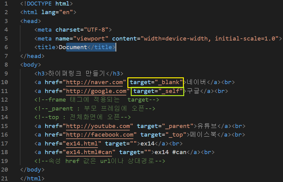 target : 링크에 연결된 HTML 페이지가 출력될 윈도우 이름 지정