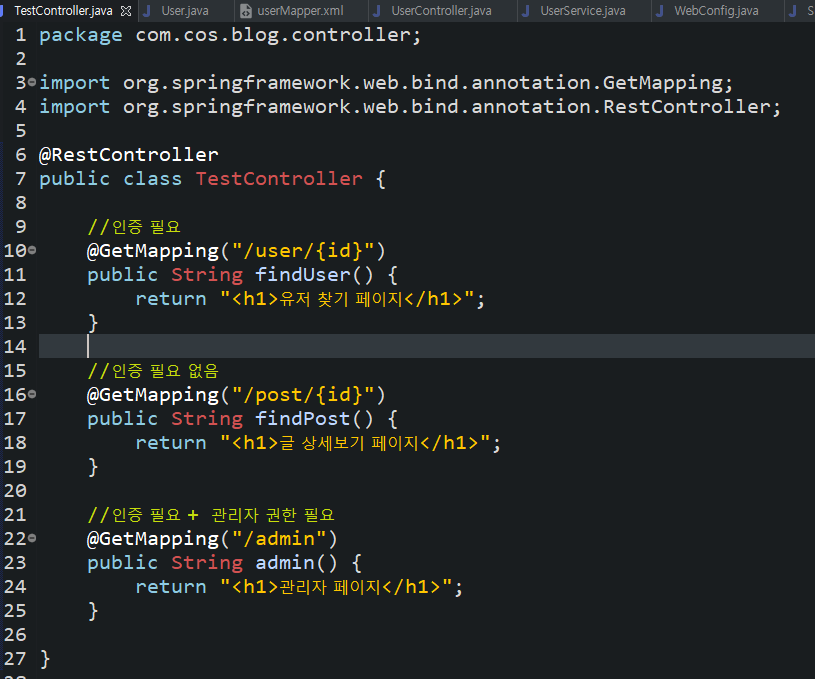 현재 TestController에는 페이지가 적어서
