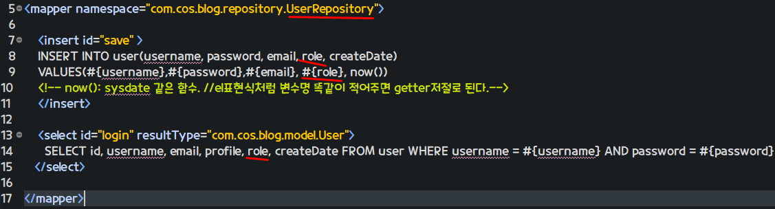 그럼 mapper에도 role을 추가해야 한다.