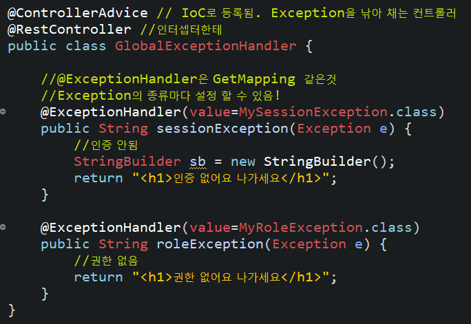 @ExceptionHandler를 걸면서 Exception을 관리할수 있다.