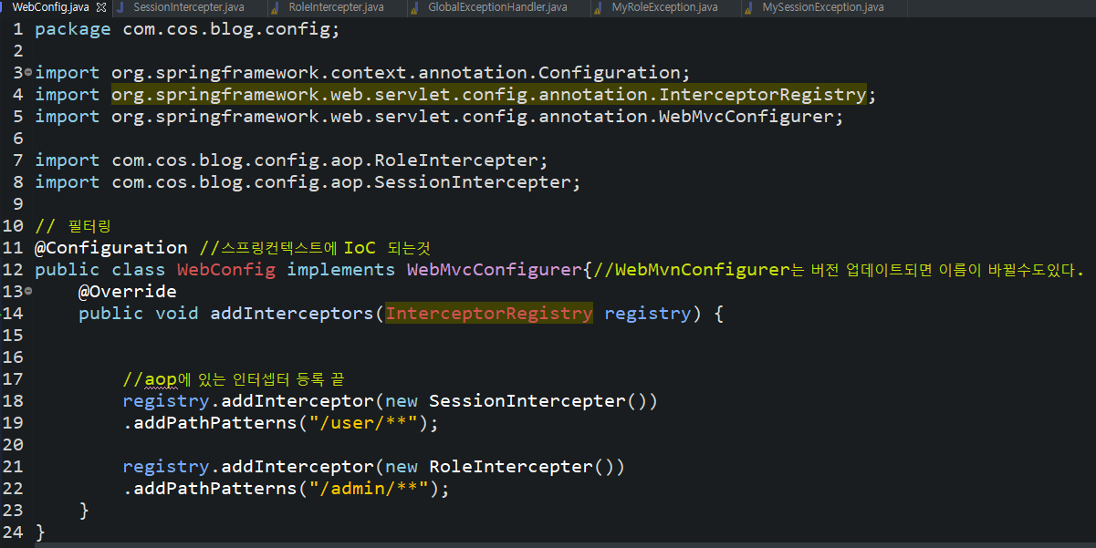 인터셉터는 내부에 구현되어있어서 이름이 바뀔수도 있다.