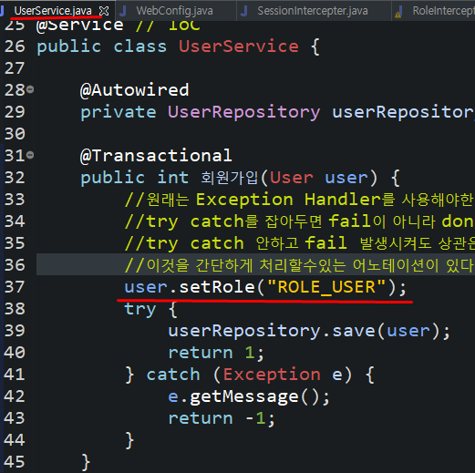 UserService에서 user의 Role을 설정해줌