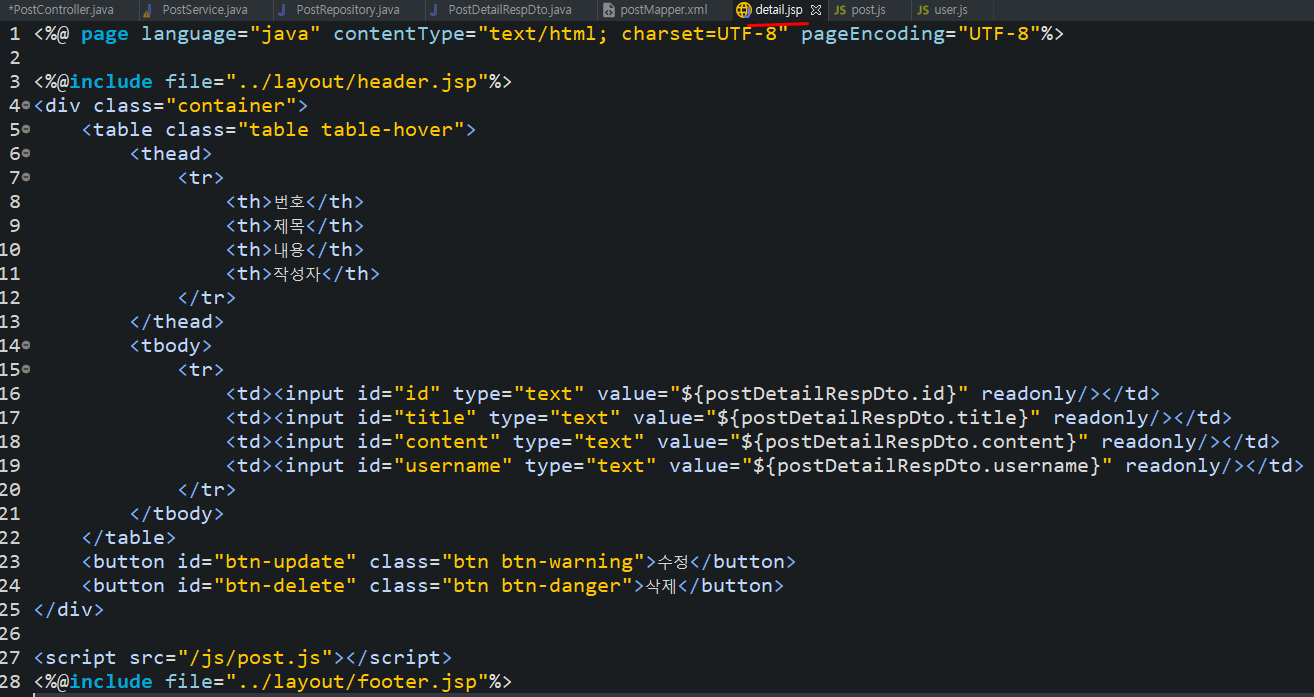 <td><input id="id" type="text" value="${postDetailRespDto.id}" readonly/></td>