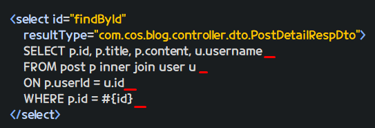 xml파일에서 아까 만들었던 SQL Join을 넣어둔다.