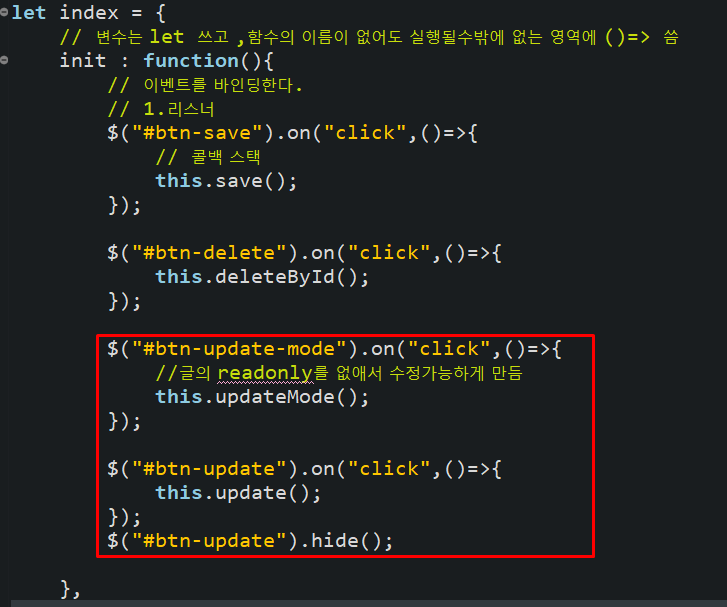 <button id="btn-update" class="btn btn-warning">수정</button>
