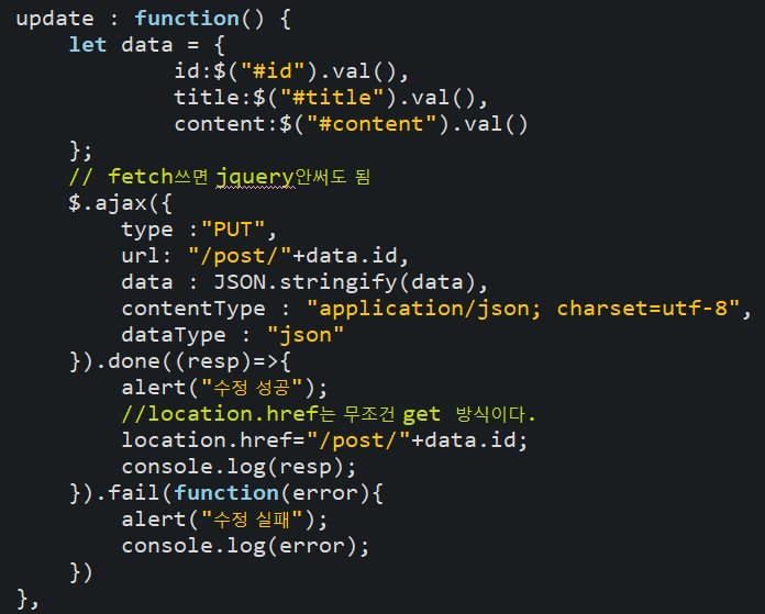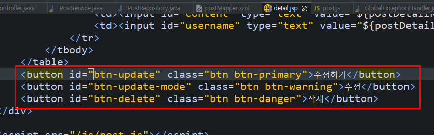 <button id="btn-update" class="btn btn-warning">수정</button>