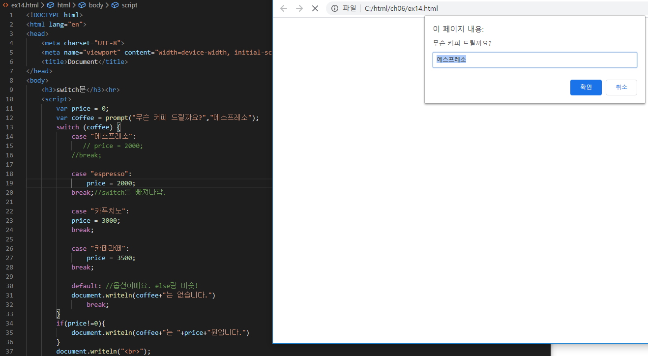 var coffee = prompt("무슨 커피 드릴까요?","에스프레소");