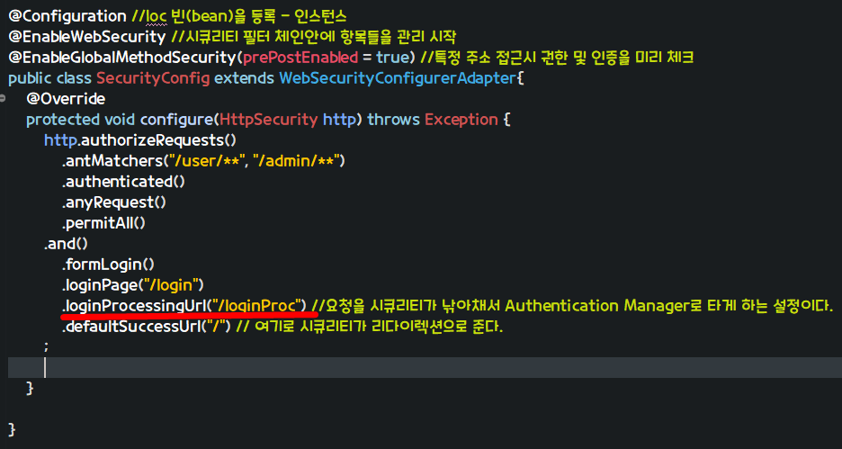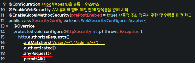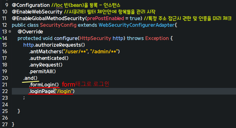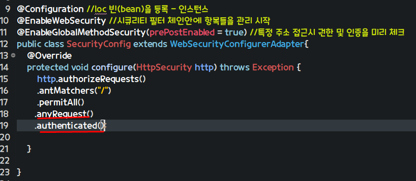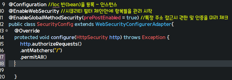 시큐리티 필터 체인 안에 항목들을 관리 시작 어노테이션