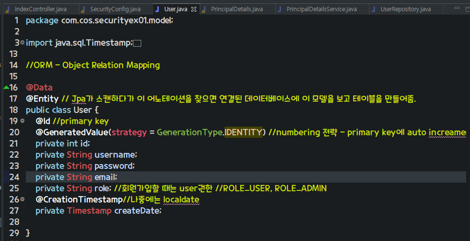 기본정보는 username, password이다 -> User