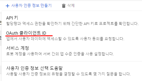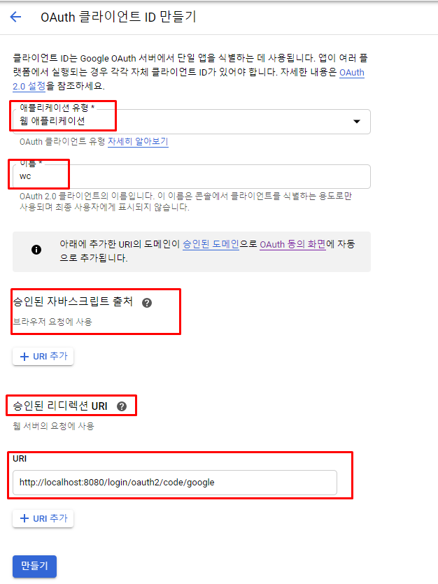 OAuth 2.0 클라이언트 ID 만들 때