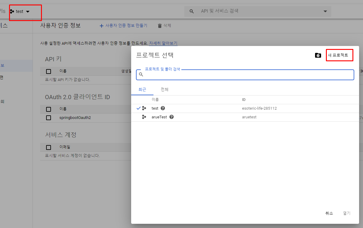 새프로젝트 생성하고