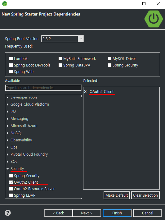 프로젝트 만들 때 Security 에서 Oauth2 Client 체크해도 좋고