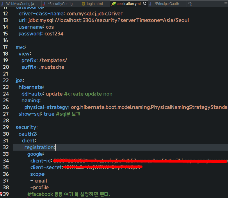 application.yml파일에 client-secret 이 노출되니까 나중에 git에 commit할 때 ignore할 거다.