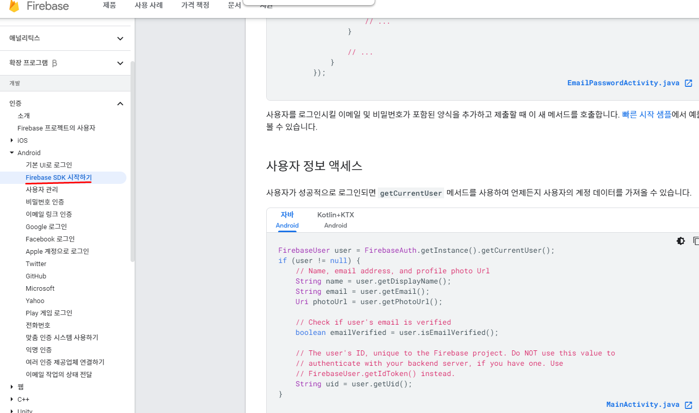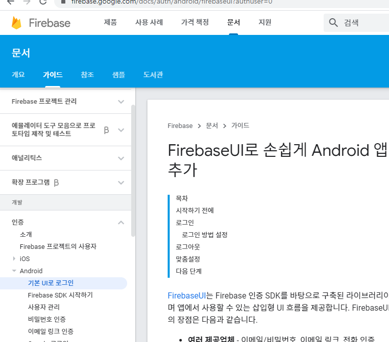 firebase SDK시작하기