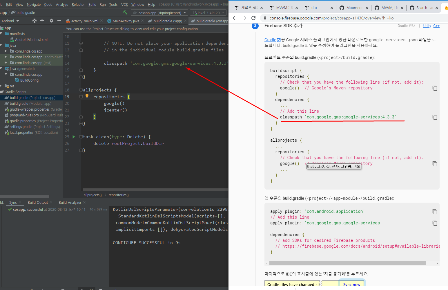 참고로 롤리팝이상만 싱크가능하다! 구글 firebase는!
