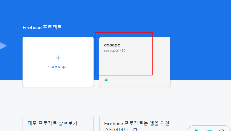 이걸로 이미 firebase가 다 구축이 되어있는 서버라고 보면됩니다.