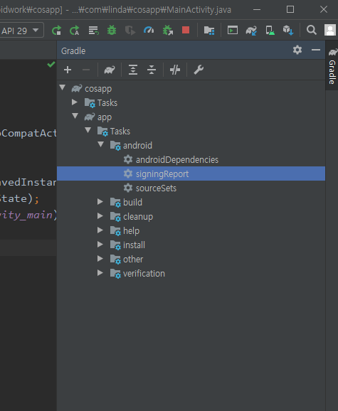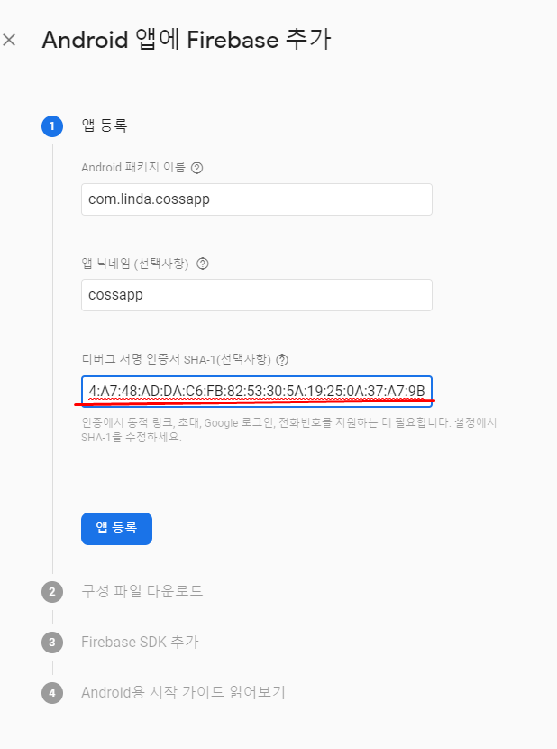 signingReport눌리면 내앱만의 해쉬가 생김.