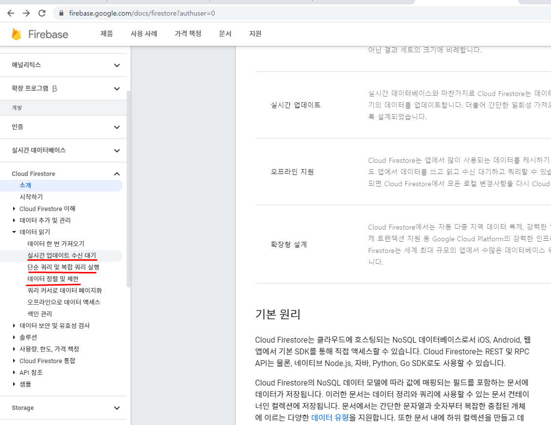데이터 순서 보장 안 됨 -> orderby해야겠지요 그래서 날짜가 꼭 필요해요. (날짜는 느려요) 아니면 문서 ID를 내가 직접 1, 2, 3, 4로 문서만들 때 매겨주세요.