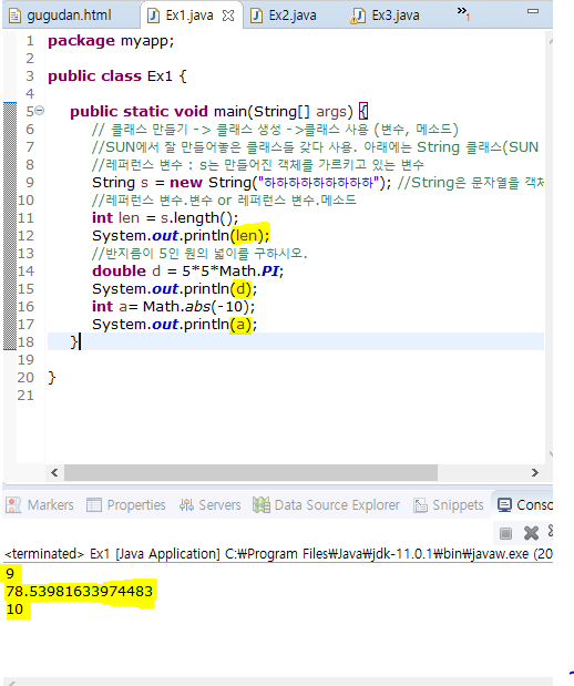 //SUN에서 잘 만들어놓은 클래스들 갖다 사용. 아래에는 String 클래스(SUN 회사에서 제공) 생성