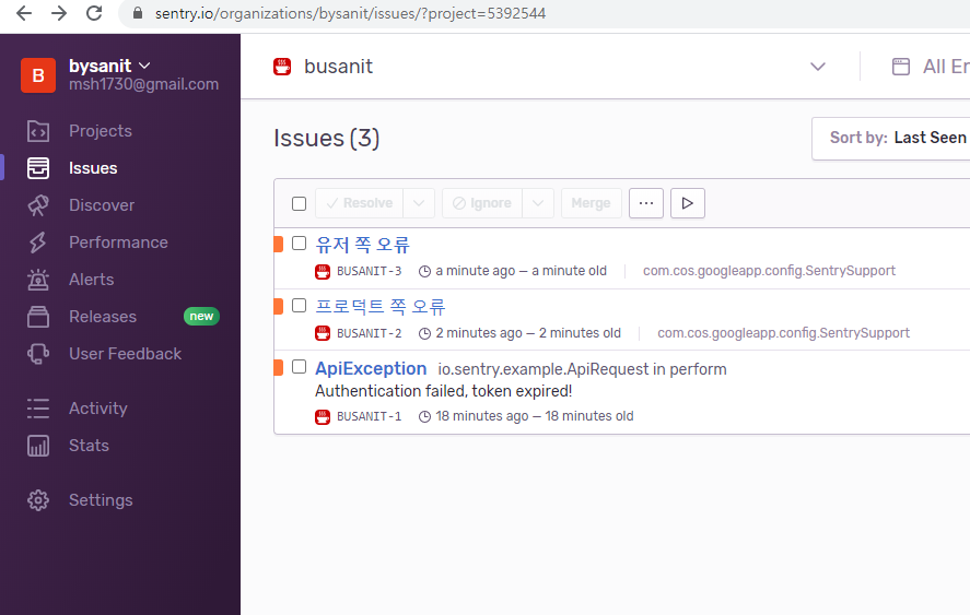 스프링 앱을 센트리로 감시 (+스프링에서의 커스텀 예외처리 약간)