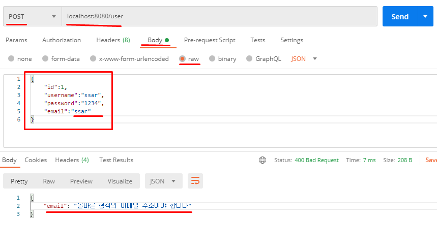 오류 난거 최대한 요약해서 심플한거 message만 보내요.