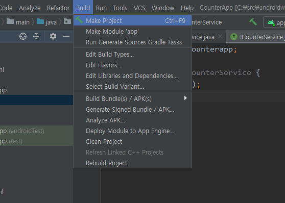 AIDL만들고 나서 make project해서 build 해줘야 한다.