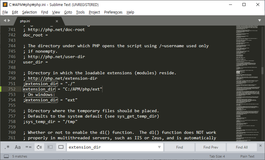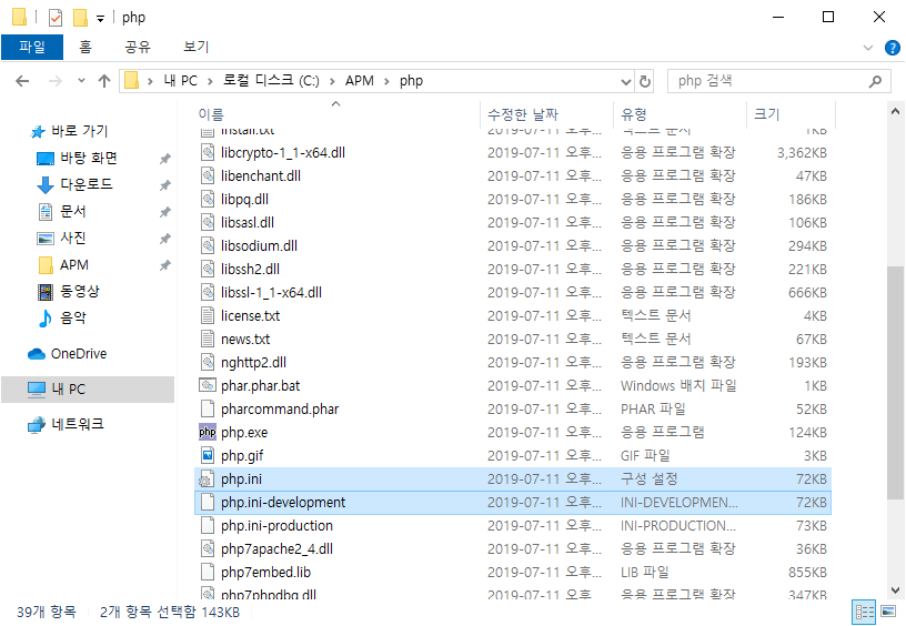 그 다음 extension 디렉토리 변경을 위해 php.ini를 수정한다.
