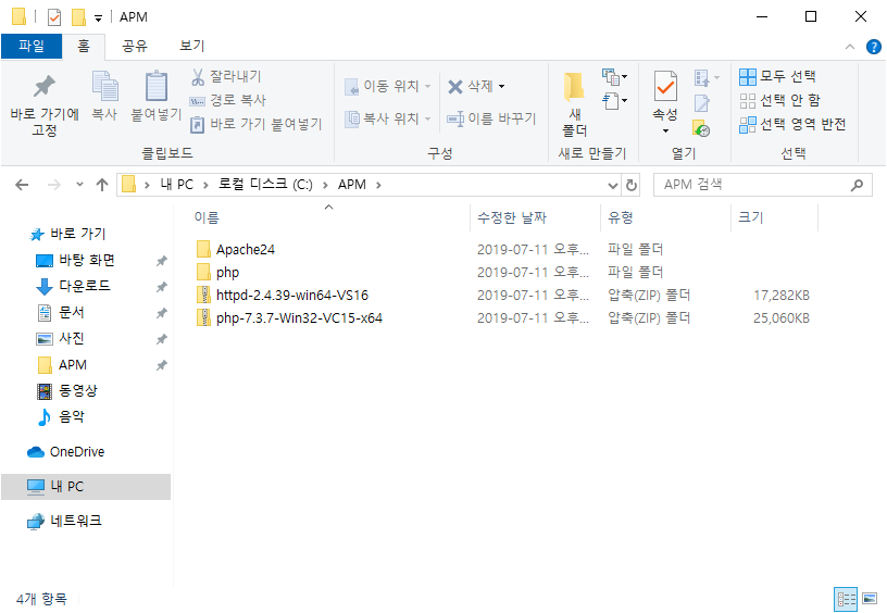 이 역시 apache와 마찬가지로 zip형태로 다운받은 후 압축을 APM root directory에 풀어준다.