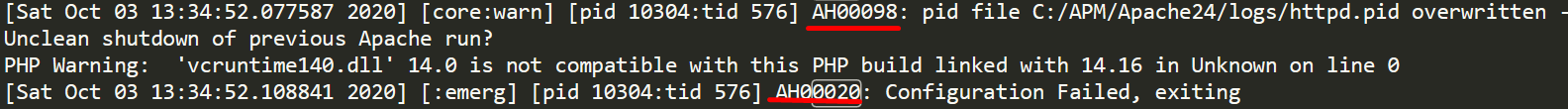 php설치하고 나니까 에러가 있어서 아파치 start가 안된다고 한다