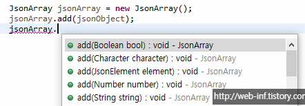 JsonArray에서 ADD시 사용할수있는 메소드 입니다.