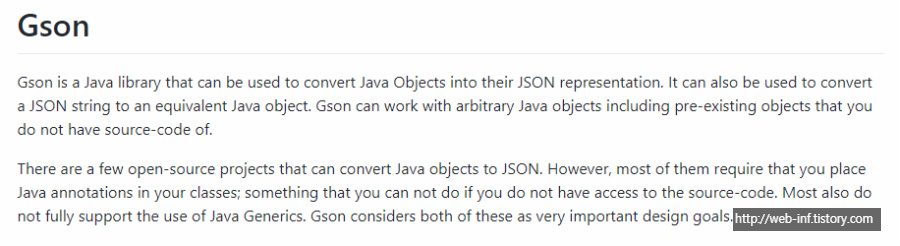 (Gson은 Java 객체를 JSON 표현으로 변환하는 데 사용할 수 있는 Java 라이브러리 입니다.)
