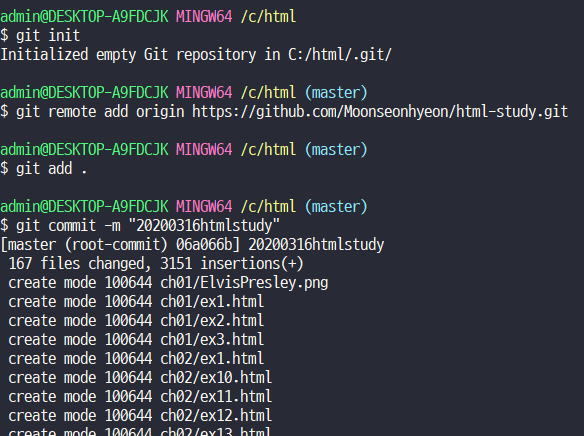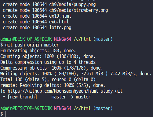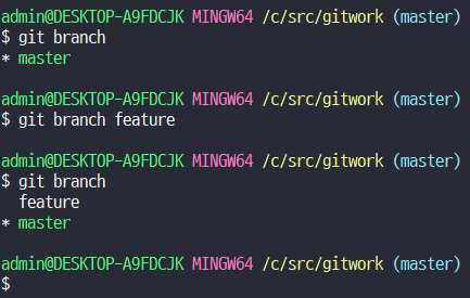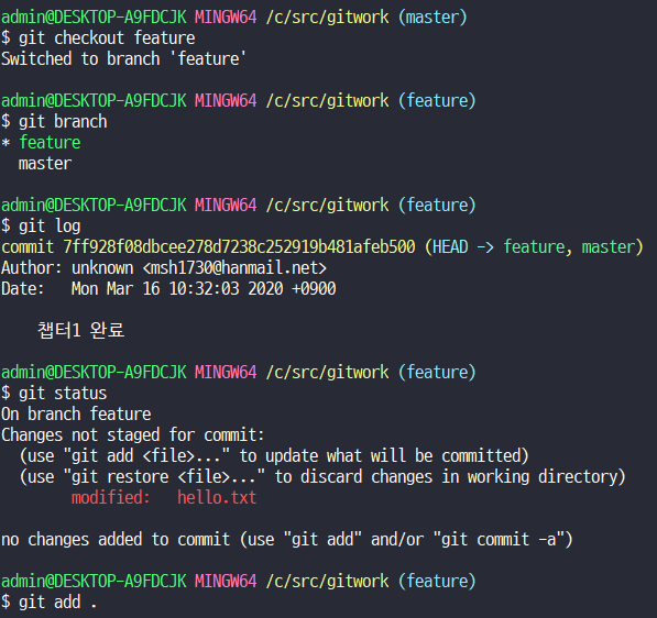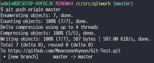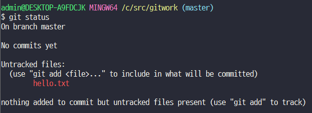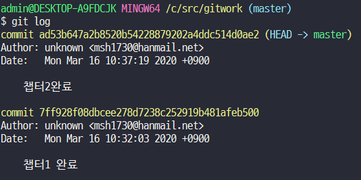 commit할때 해쉬, Master branch가 생김. 이미 생긴 상태라면 branch에 점이 생기는 것임.