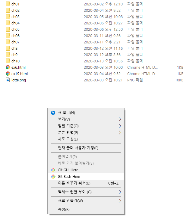 github에 올리고 싶은 파일안에 오른쪽마우스 클릭해서