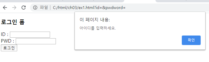 alert("ID와 PWD를 입력하세요.");