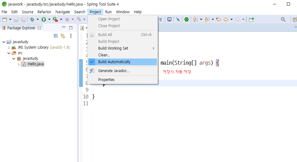 저장시 자동 컴파일(그럼 자동으로 class파일이 생겼다는 것)되게 아래처럼 설정되어있어요.