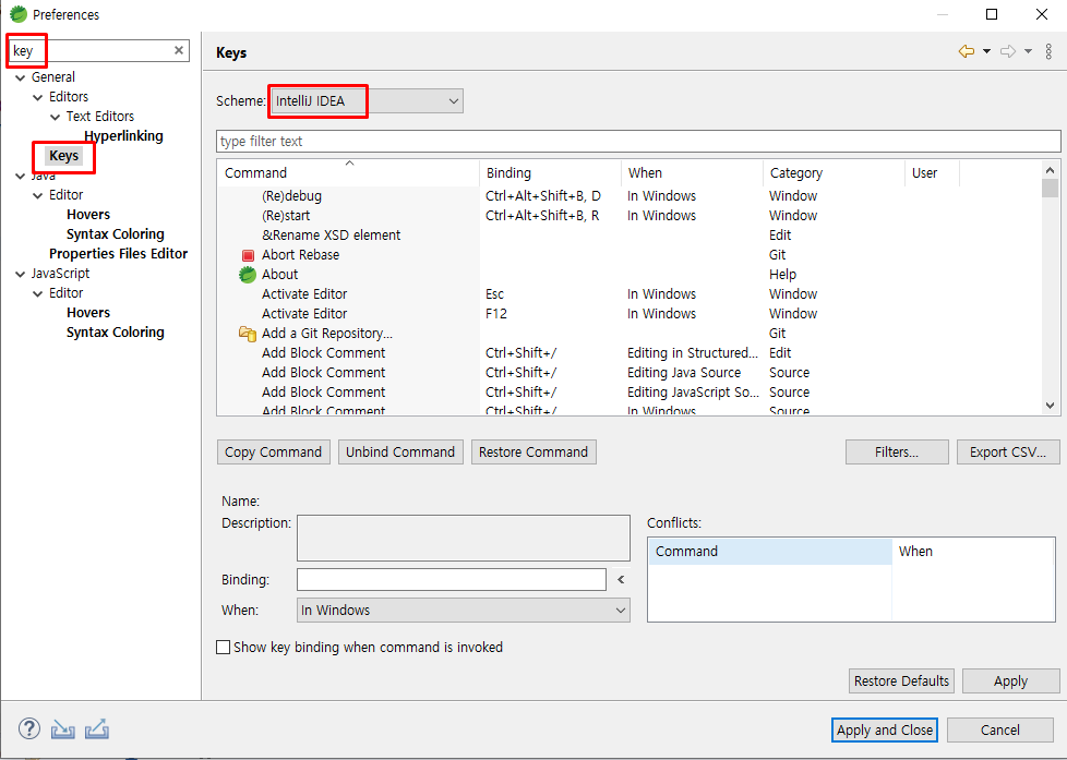 intellij (keymap : 단축키 설정)검색