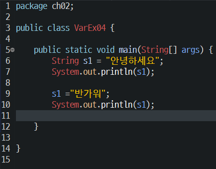 타입 변수명 대입한다 값 문장을 끝냅니다.