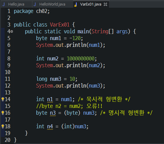 long(8byte) : 많이 큰 숫자를 위한 타입