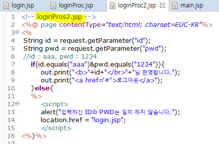 if(id.equals("aaa")&pwd.equals("1234")){