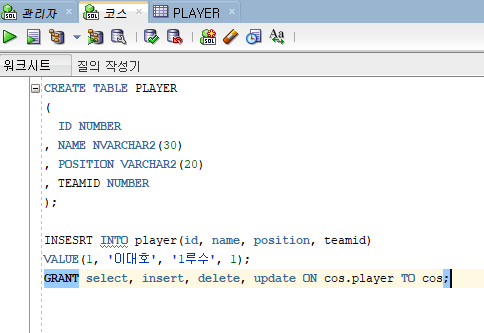 GRANT select, insert, delete, update ON cos.player TO cos;