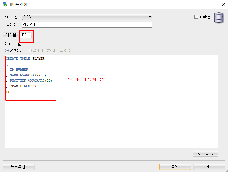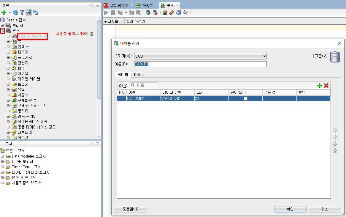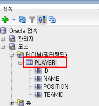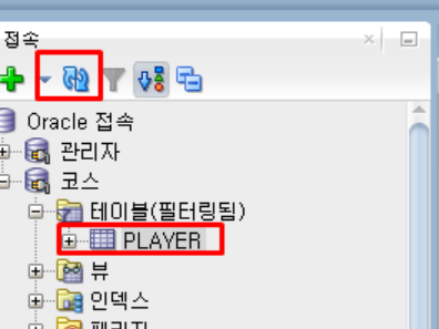 접속 탭에서 새로고침 하면 테이블이 보인다
