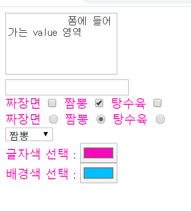 짬뽕 <input type="radio" value="2" name="china"checked>