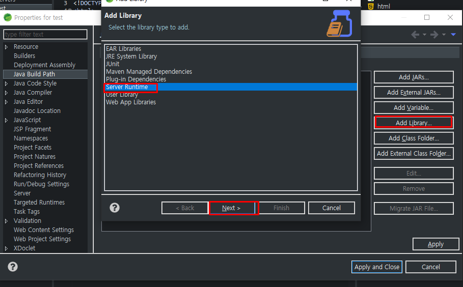 <%@에 오류가 발생할 수 있다 그럴경우 밑에 방식처럼 빌드 패스를 함.
