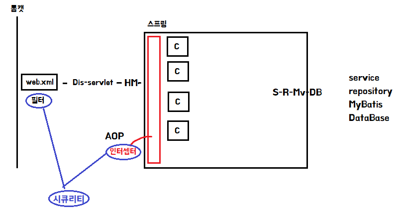 ->Dis-Servlet과 컨트롤러 사이에 있음. (함수 시작전에 발동됨)